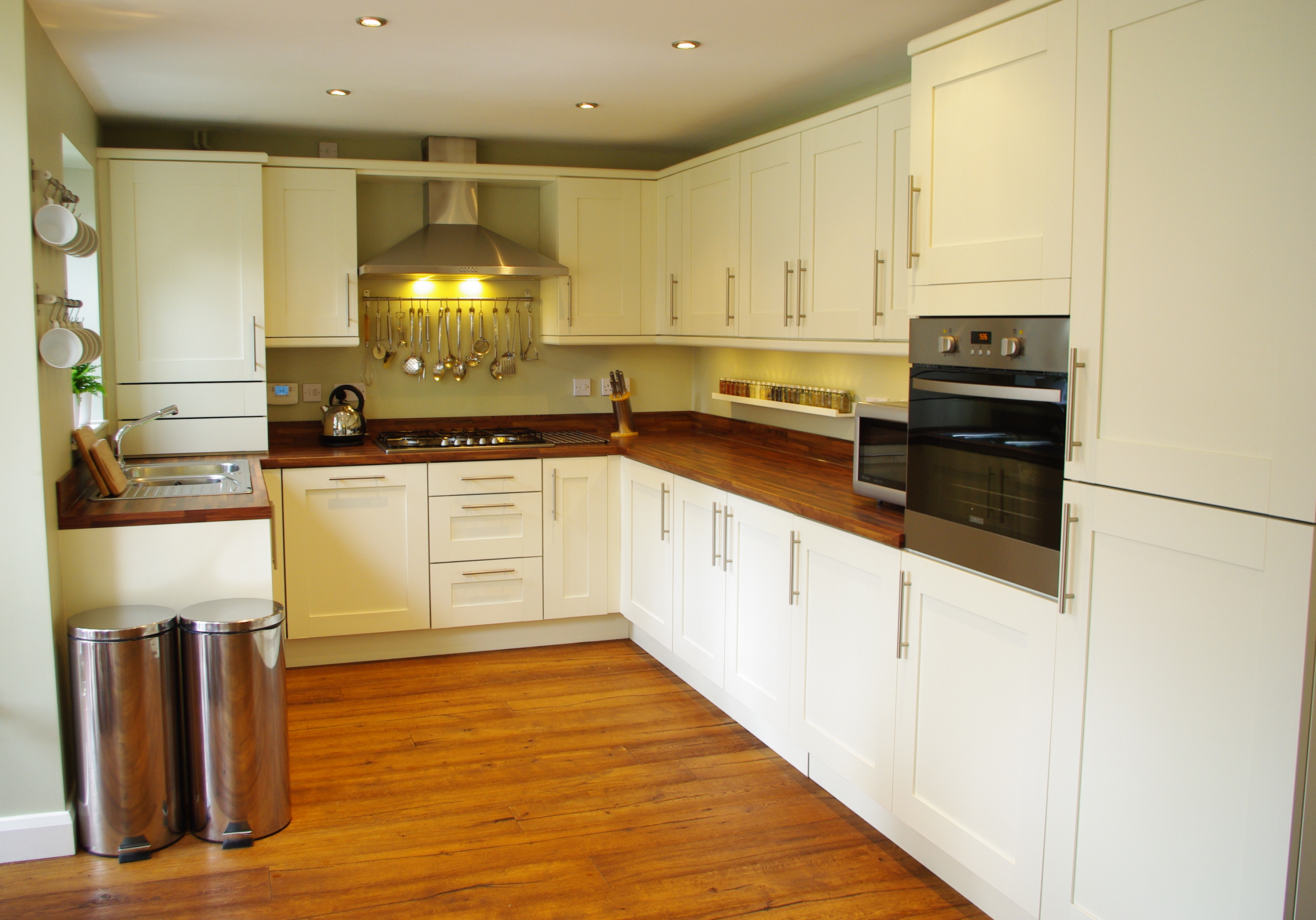 Utilise your wall space and hand your utensils. I love my utensils being so close to the cooker. It makes cooking so much easier. To hang them I used IKEA Grundtal Kitchen Series.
