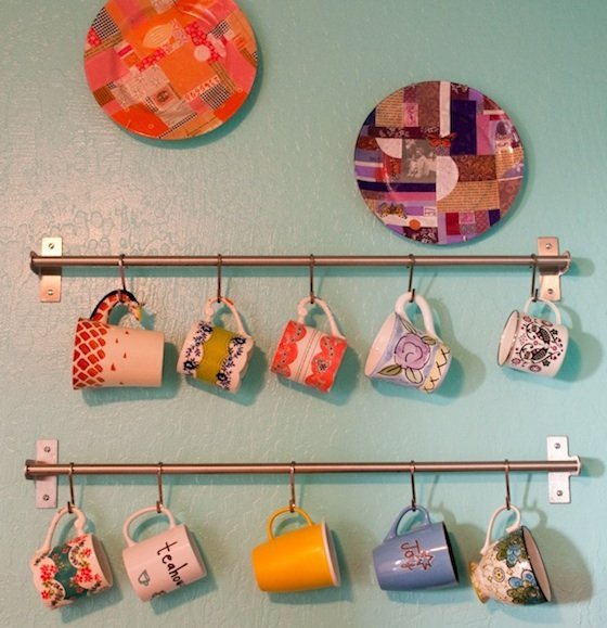 You can make a nice feature in your kitchen by hanging the colourful tea cups on the wall. You can use IKEA Grundtal series.