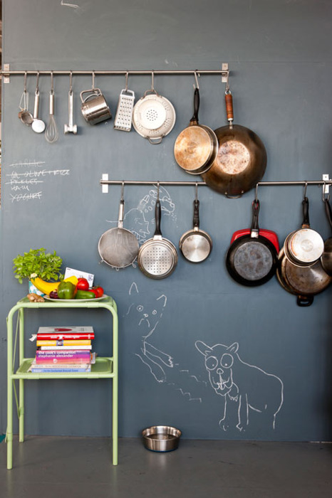 This pot rack will help you to make the best of your wall space (if you don’t have a kitchen island or if you rather have a nice light feature above your kitchen table). I used exactly the same one in my old galley kitchen (you can find picture at the end of this post). Rail and hooks are available from IKEA Grundtal Series.
