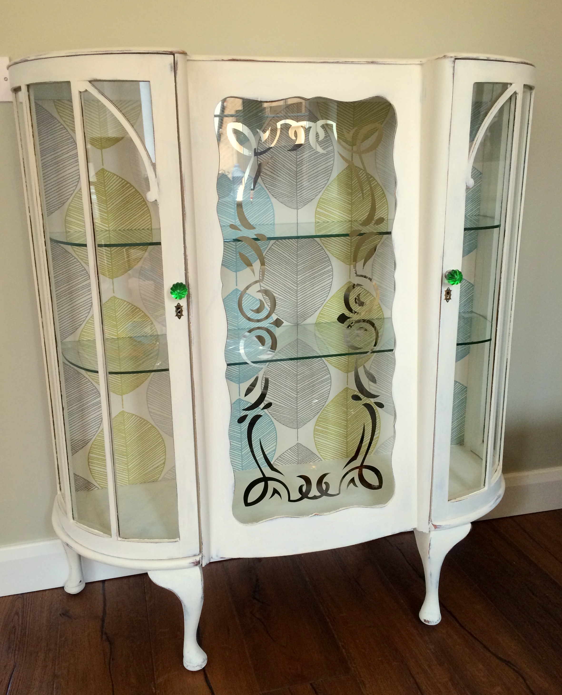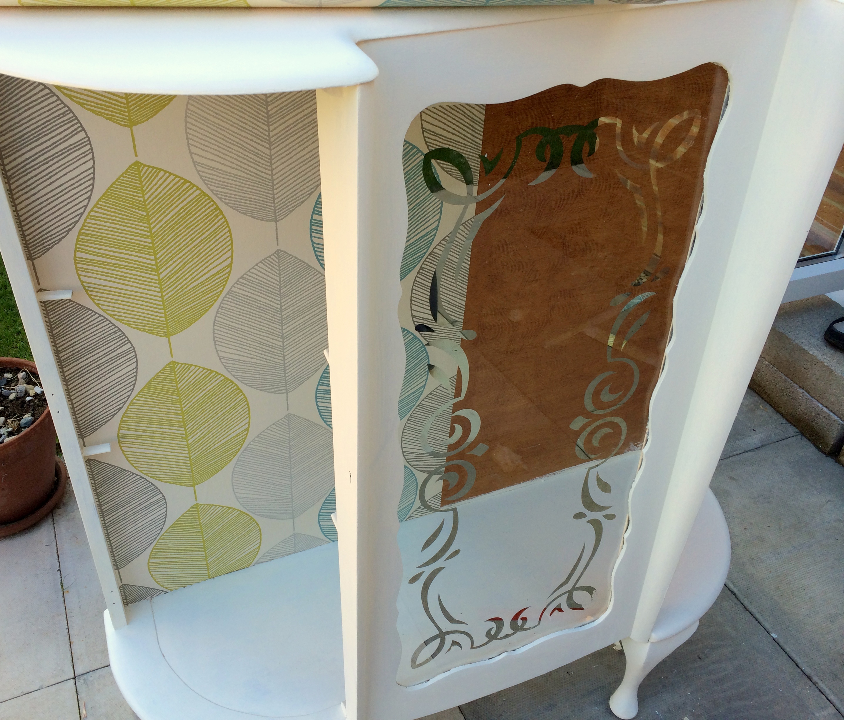 Wallpapering the back of the cabinet is not a must, few coats of paint would do the trick too, but I wanted my cabinet to stand out so I chose this leafy retro design. Colours on the wallpaper go really well with the colour scheme in our kitchen (Dulux gooseberry fool paint, white kitchen cabinets, grey sofa and solid wood floors). don’t feel pressured to buy a new roll of wallpaper you can always use a leftover from your latest house refurbishment (we all have those knocking about in our sheds and garages). Or go really quirky and use old newspaper cut-outs, pictures, bottle labels etc. The sky is the limit.