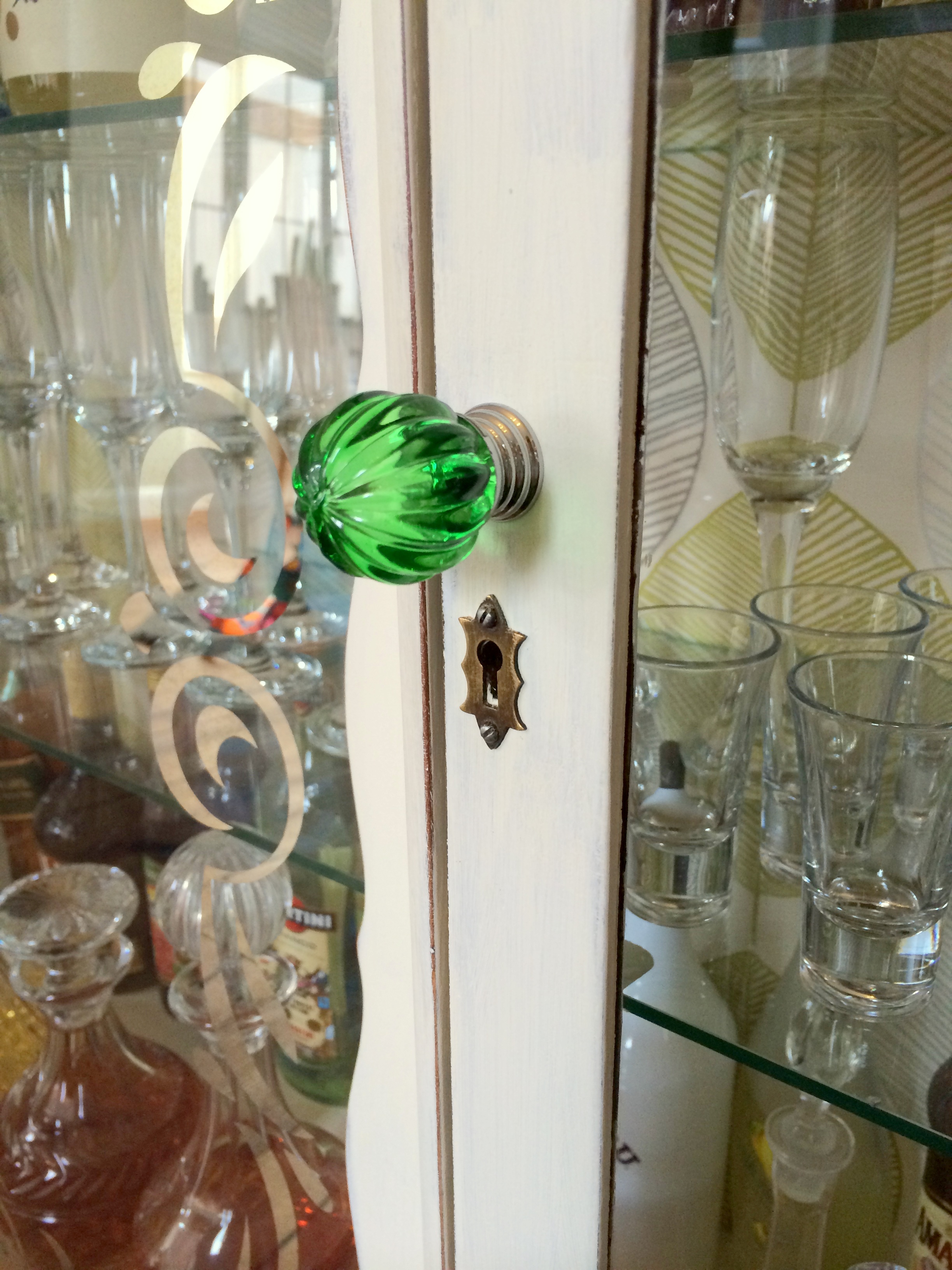 Why not? Glass, porcelain or acrylic, colourful door knobs are SO shabby chic!!! I purchased few on eBay a while back and I decided to utilise some of them for the purpose of this makeover. It was a brilliant move, with two green glass knobs our cabinet finally looked complete.